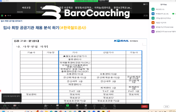 - 각 학생의 희망 공기업에 맞춘 맞춤형 취업전략 수립 중심 강의