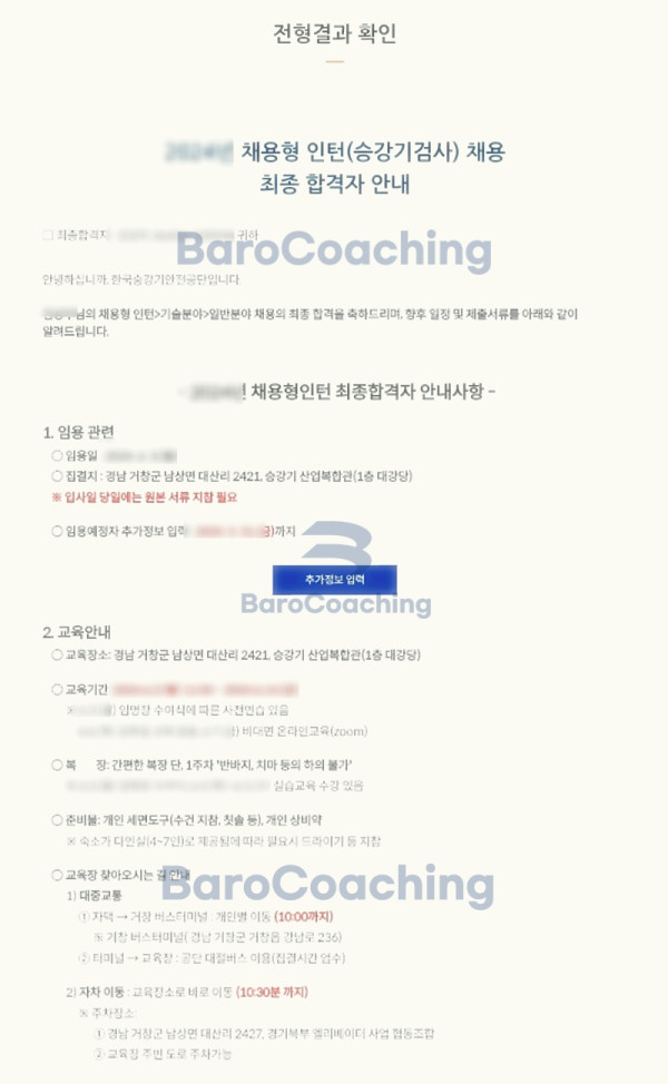 바로코칭에서 컨설팅 받은 학생의 한국승강기안전공사 면접 합격 후기입니다.