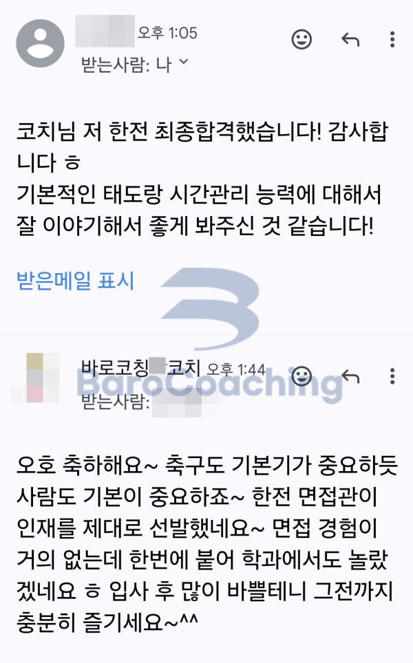 바로코칭에서 컨설팅 받은 학생의 한국전력공사(한전) 면접 합격 후기입니다.