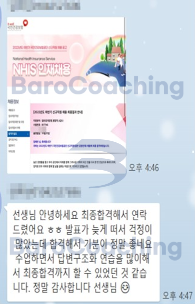 바로코칭을 통해 합격한 수강생들의 실제 문자/카톡 후기를 모았습니다.