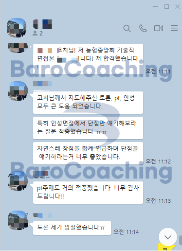 바로코칭을 통해 합격한 수강생들의 실제 문자/카톡 후기를 모았습니다.
