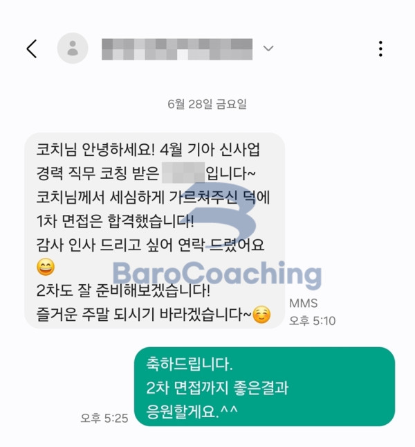 바로코칭을 통해 합격한 수강생들의 실제 문자/카톡 후기를 모았습니다.