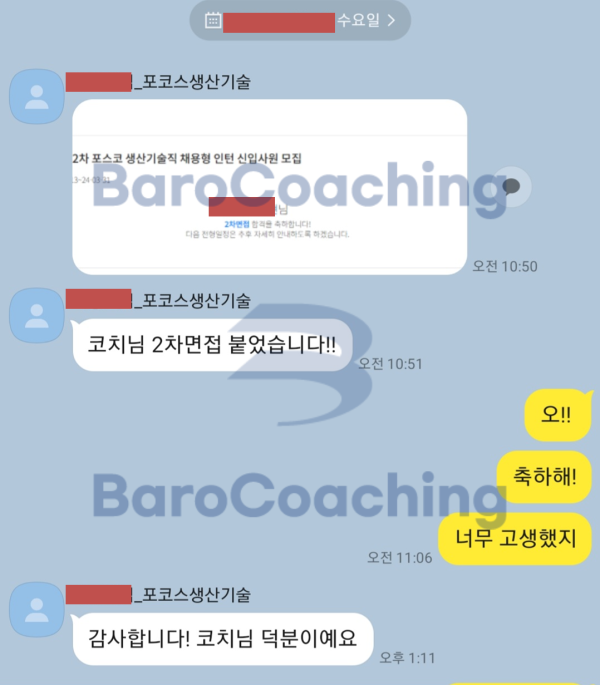 바로코칭에서 컨설팅 받은 학생의 포스코 면접 합격 후기입니다.